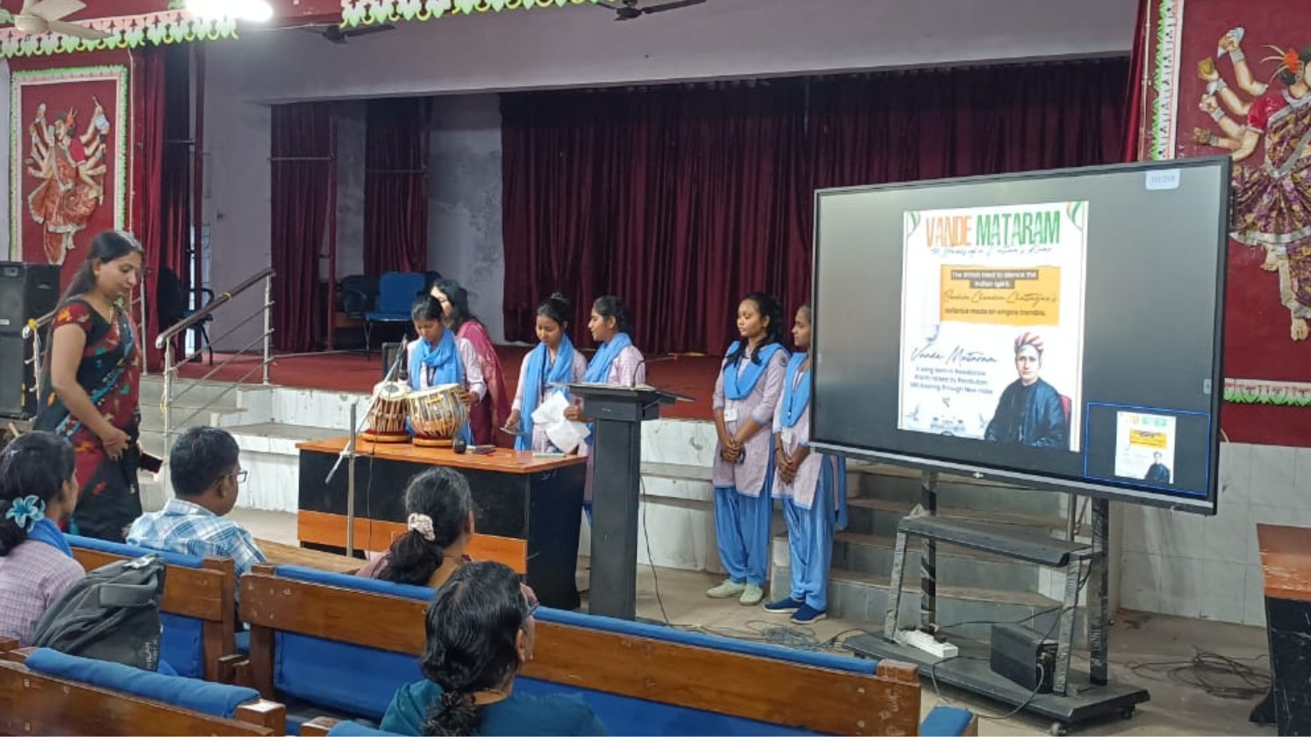 छात्राओं ने अपने विचार साझा करके कार्यक्रम में सक्रिय रूप से भाग लिया। 1. राजनीति विज्ञान विभाग के सेमेस्टर 4 की छात्रा प्रतिभा और रूपा और रसायन विज्ञान विभाग की प्रिया बनर्जी ने एक कविता सुनाई और मेहर निगार सेमेस्टर 4 ने इस राष्ट्रीय गीत की ऐतिहासिक पृष्ठभूमि के बारे में सभागार को अवगत कराया।