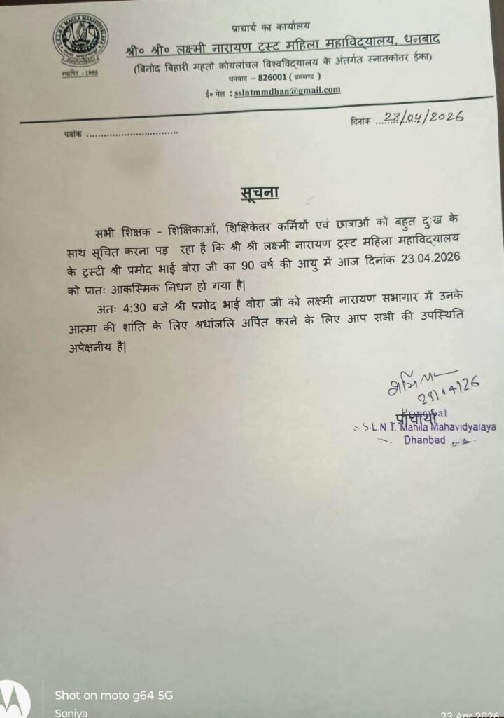 एस.एल.एन.टी. महिला महाविद्यालय में आज शोकसभा, प्रमोद भाई बोरा को दी जाएगी श्रद्धांजलि !