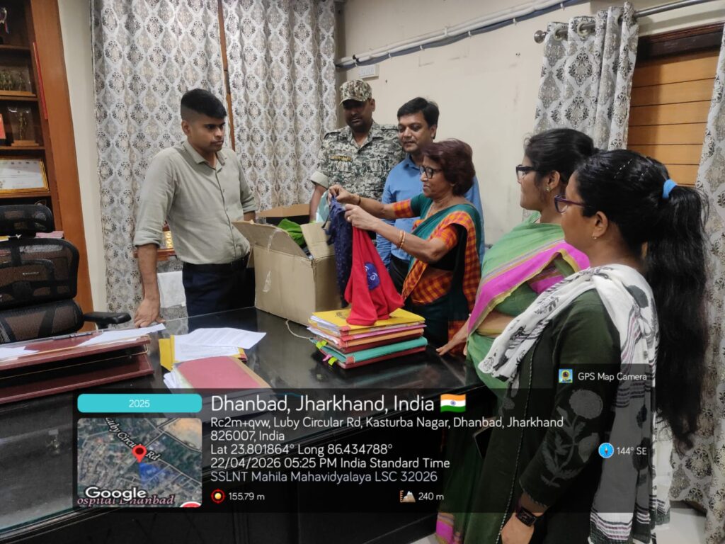 आज दिनांक 22.4.2026 को विश्व पृथ्वी दिवस के अवसर पर एसएसएलएनटी महिला महाविद्यालय की छात्राओं के द्वारा पुराने कपड़ों से तैयार पानी के बाटॅल रखने की थैली तथा सब्जी थैली को जो करीब 265 की संख्या में थे नगर निगम को प्राचार्या तथा शिक्षिकाओं द्वारा सुपुर्द किया गया।